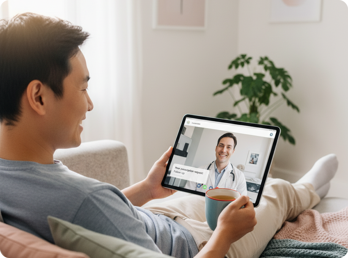 Ob Arbeitsunfähigkeitsbescheinigungen, Folgerezepte oder moderne Therapien – wir schaffen den schnellsten und unkompliziertesten Zugang zu Gesundheit, genau dort, wo digitale Lösungen den größten Mehrwert bieten. Mit smarter Telemedizin, persönlicher Betreuung und einem durchdachten Komplettservice sparen Patient:innen Zeit, überwinden bürokratische Hürden und profitieren von nachweislich höherer Behandlungsqualität. Dazu tragen u.a. KI-gestützte ärztliche Fragebögen, optimierte Aufklärungsmaterialien und intelligente Risikoeinschätzungen – etwa im Bereich Cannabistherapie – bei.